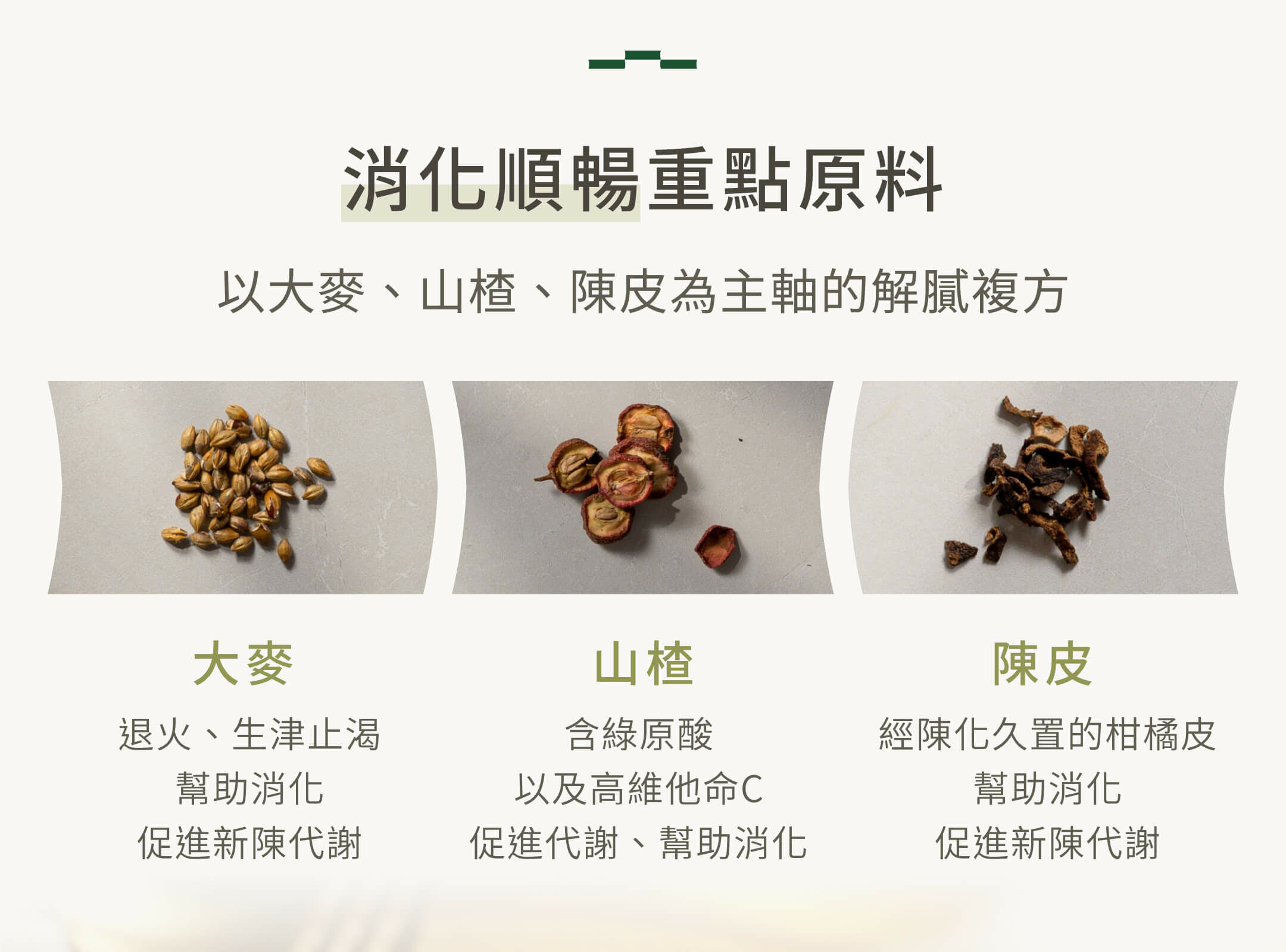 ✓ 以大麥、山楂、陳皮為主軸的解膩複方