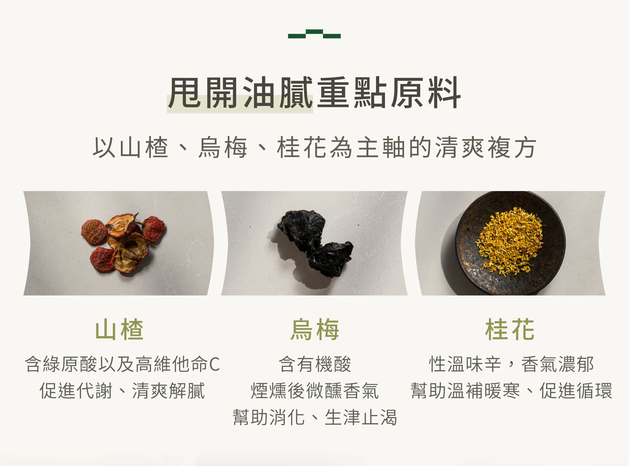 ✓ 以山楂、烏梅、桂花為主軸的清爽複方